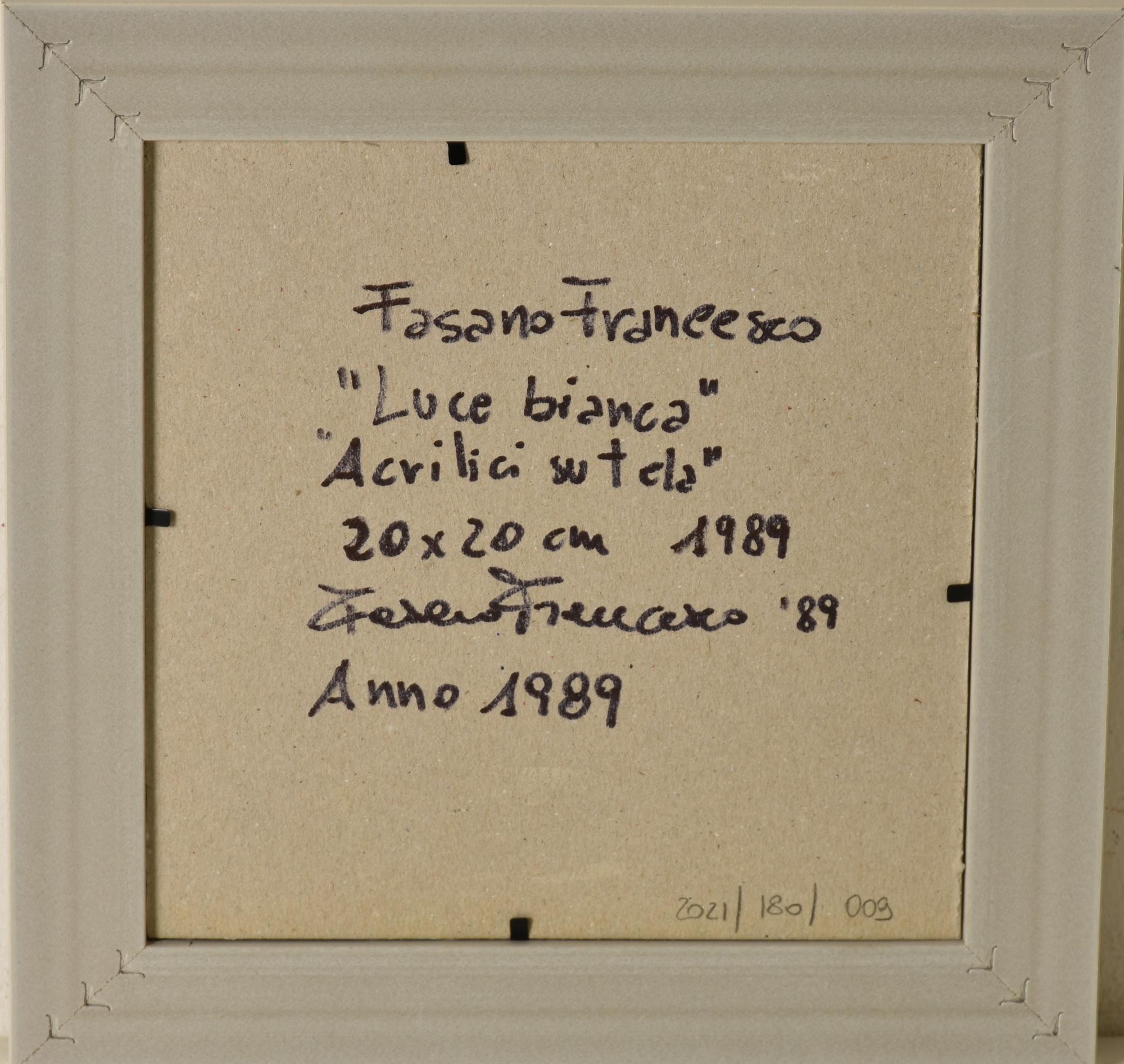 Francesco Fasano LUCE BIANCA acrilico su cartoncino, cm 20x20 al retro:...