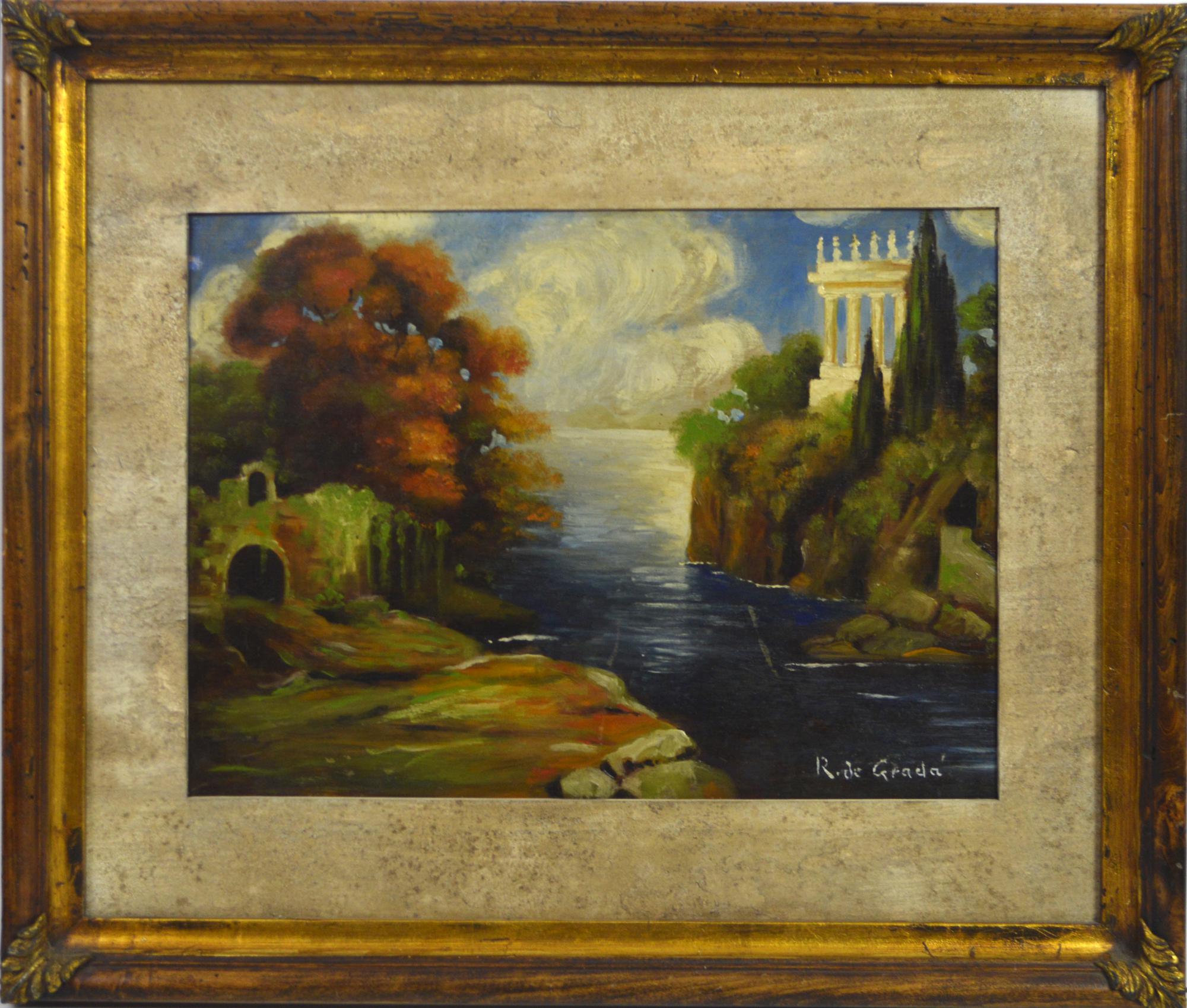 Scuola del XX secolo PAESAGGIO olio su tavola, cm 35x48 firma "R. De Grada"...