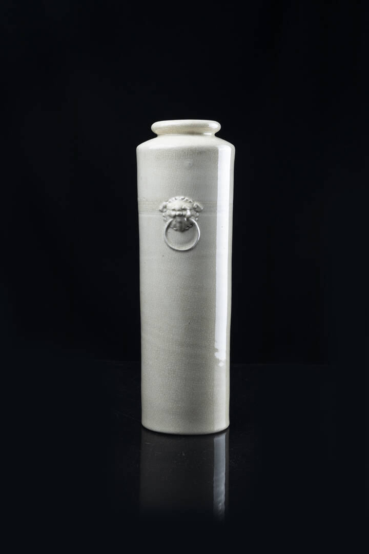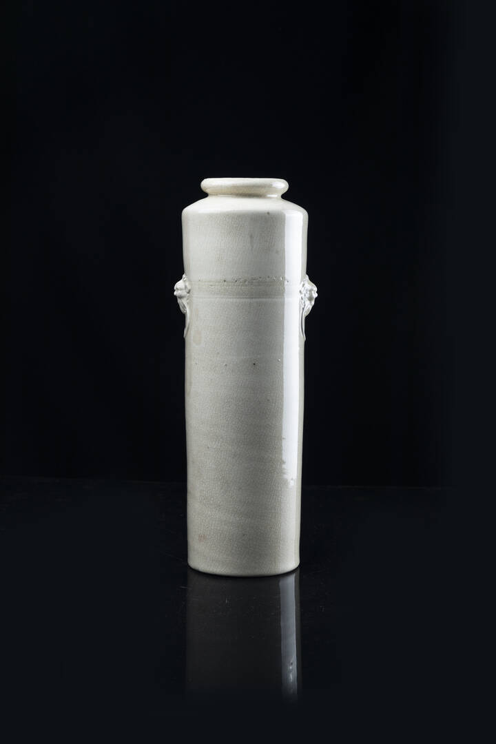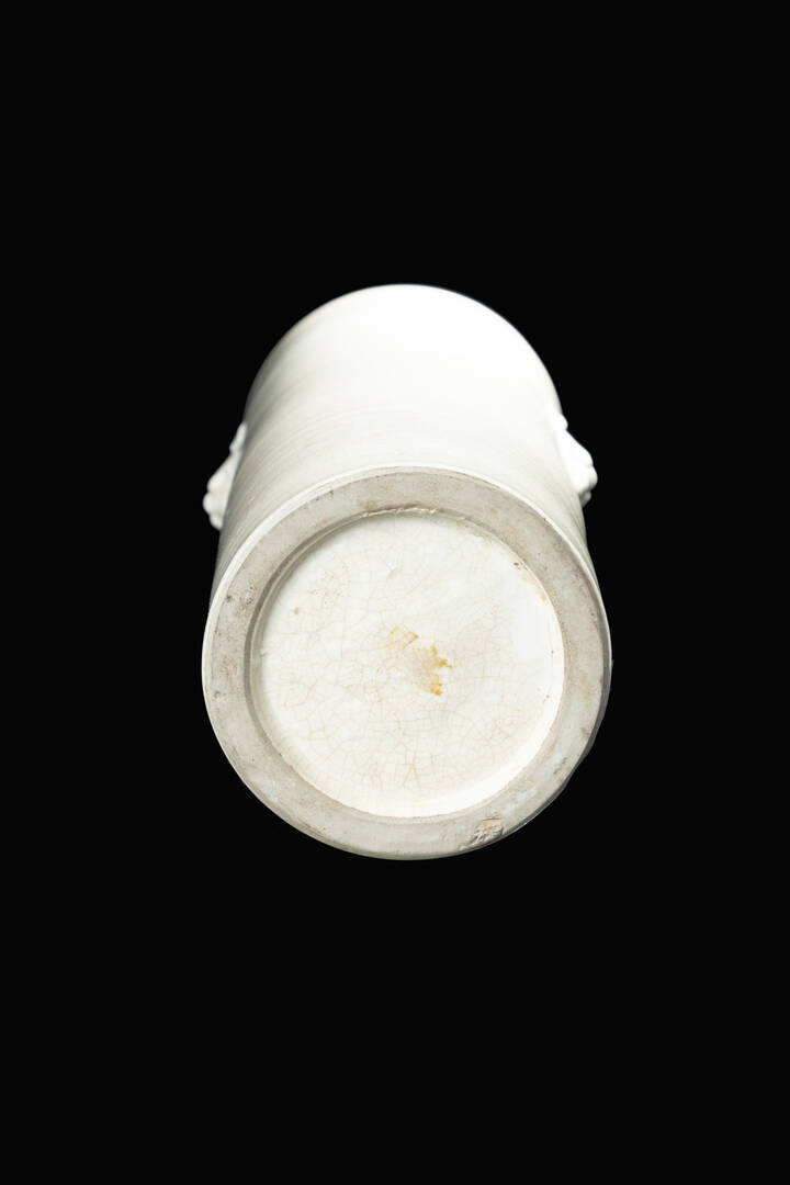 Vaso in porcellana Blanc de Chine a raclette con mascheroni, Cina, dinastia Qing, epoca Kangxi (1662-1722).