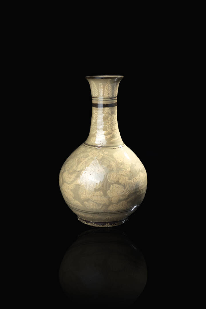 Vaso in gres con decori di pesci e personaggi, Cina, dinastia Qing, epoca Guangxu (1875-1908).