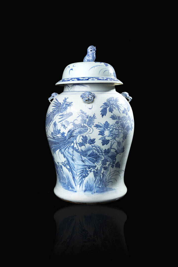 Potiche in porcellana bianca e blu, Cina, dinastia Qing, XIX secolo.