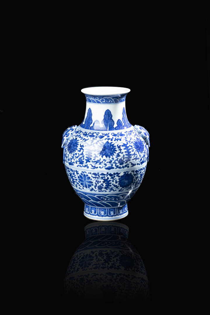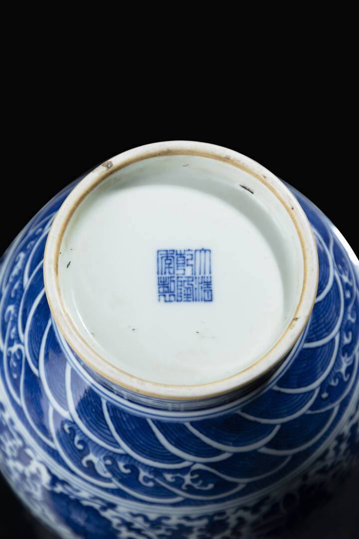 Vaso in porcellana binco e blu, marchio aporcrifo Qianglong, Cina, dinastia Qing, XX secolo.