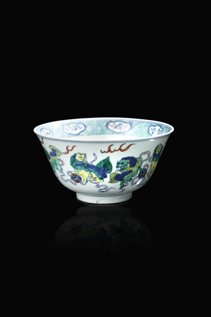 Ciotola in porcellana Doucai, Cina, dinastia Qing, XX secolo.
