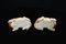 Coppia di cani di Pho in porcellana a smalti policromi con vaso sul dorso, Cina, dinastia Qing, XIX secolo.