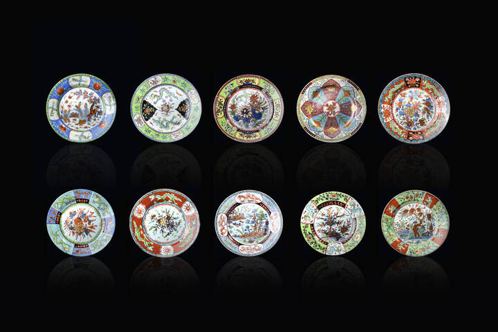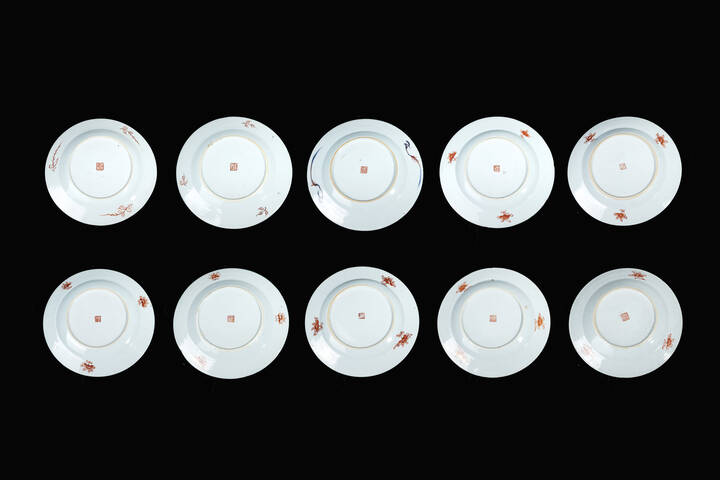 Lotto composto da dieci piatti compagnia delle Indie Orientali, Cina, XVIII secolo.