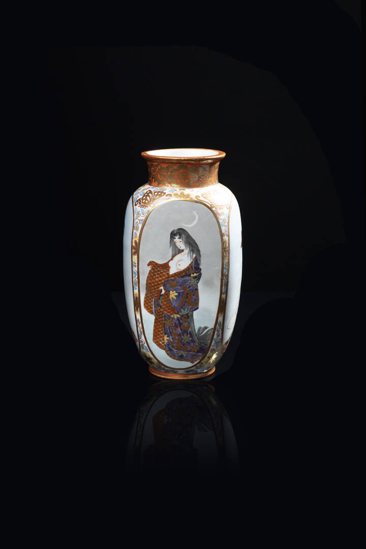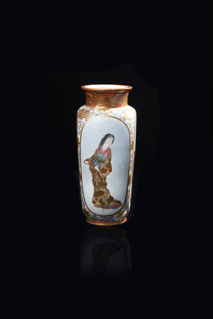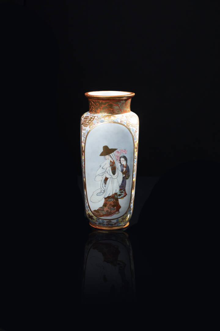 Vaso in porcellana Kutani dipinto con Geishe, Giappone, XX secolo.