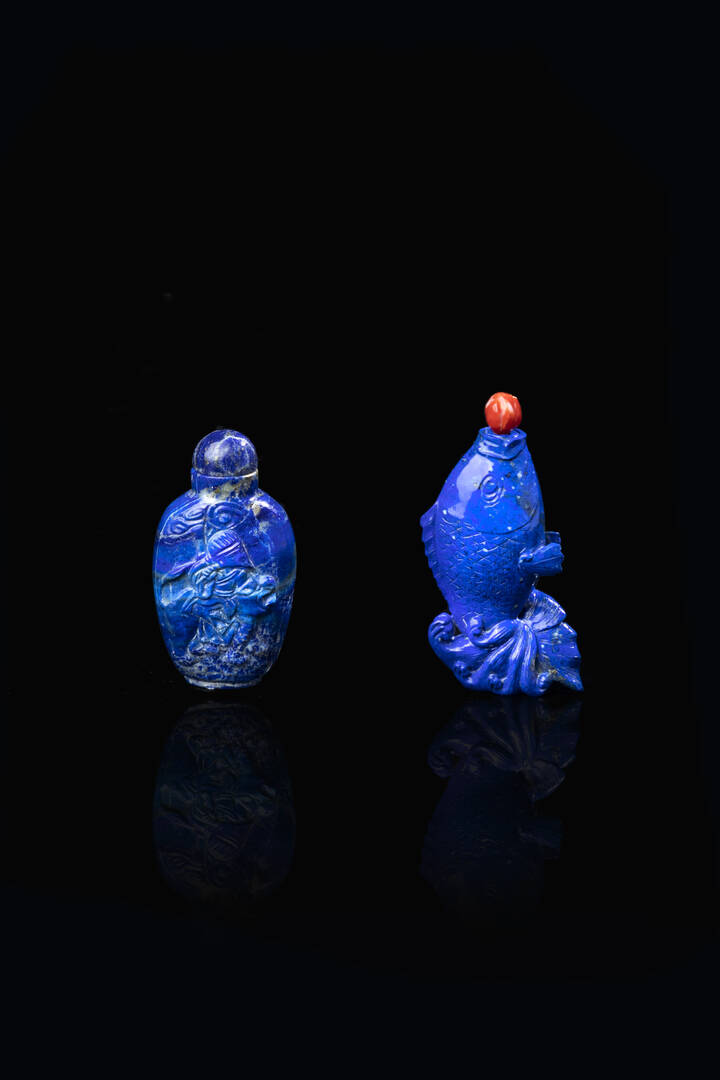 Coppia di snuff bottle in lapislazzuli, Cina, XX secolo.