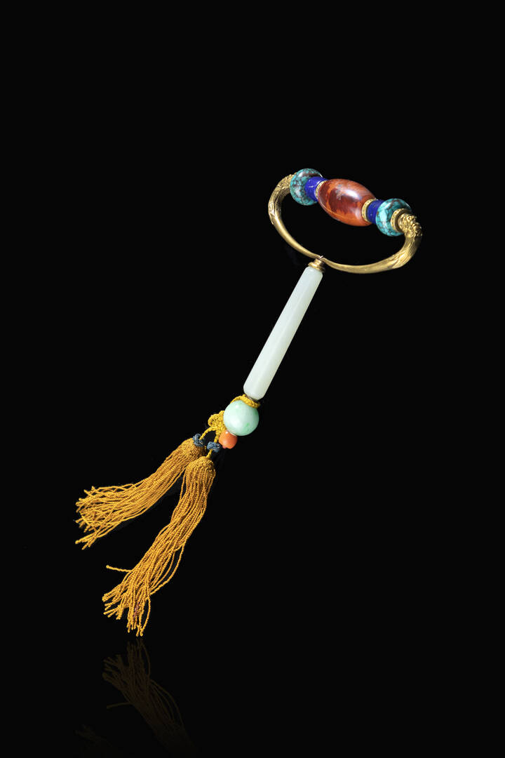 Massaggiatore per occhi in pietre dure e dettagli in giada, Cina, dinastia Qing, XIX secolo.