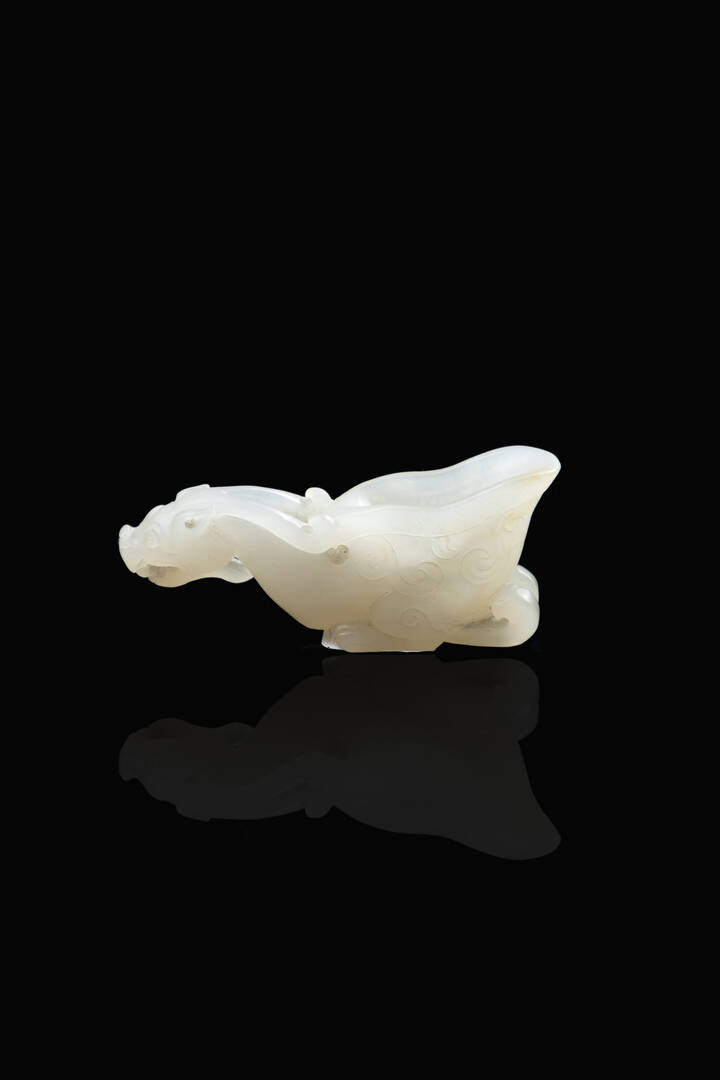 Piccola giada a forma di coppa libatoria con manico a forma drago, Cina, Repubblica, XX secolo.