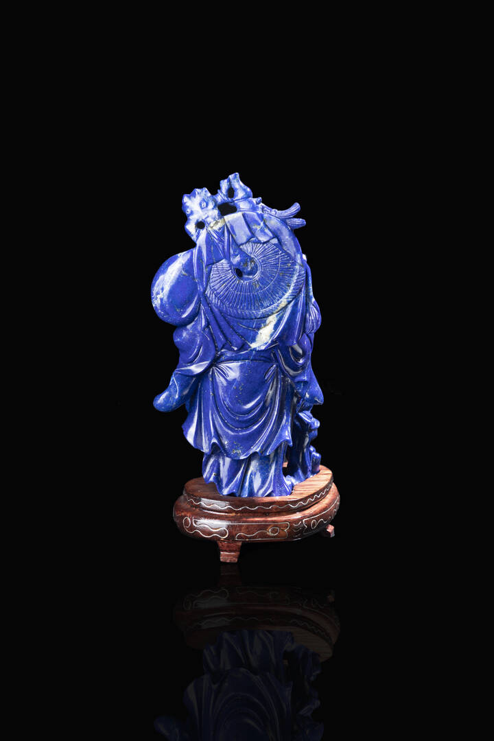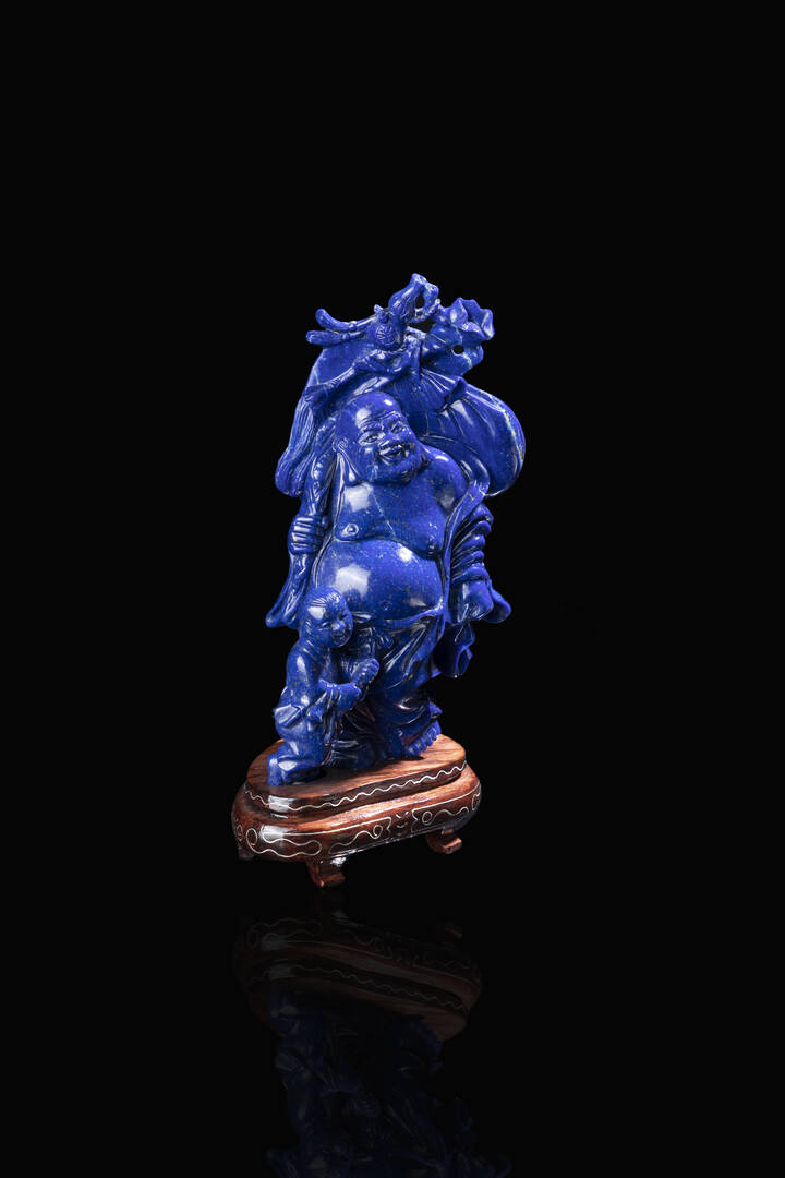 Scultura di Buddha con bambini in lapislazzuli, Cina, Repubblica, XX secolo.
