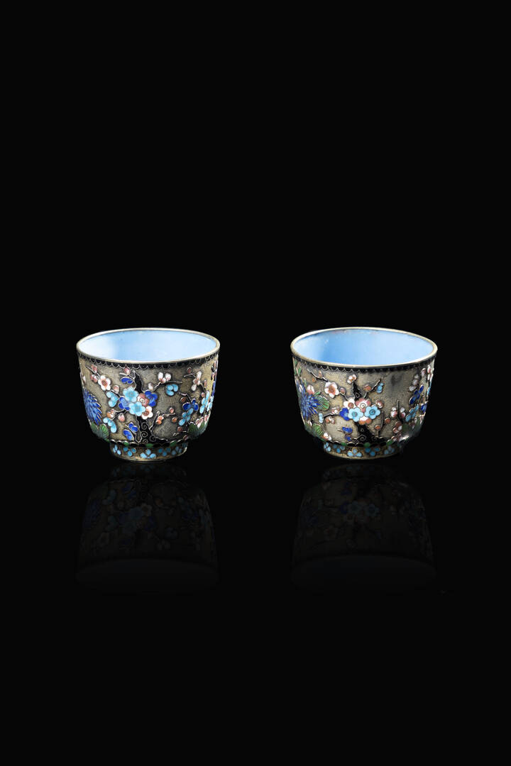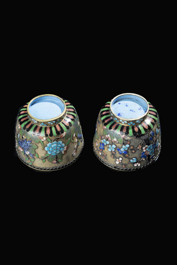 Coppia di piccole scodelle in metallo smaltato, Cina, dinastia Qing, epoca Jiaqing (1796-1820).