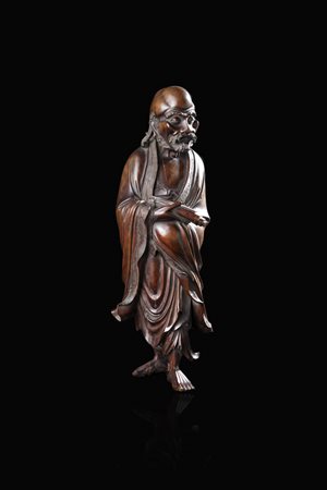 Figura di Loan in legno di frutto, Cina, Repubblica, XX secolo.