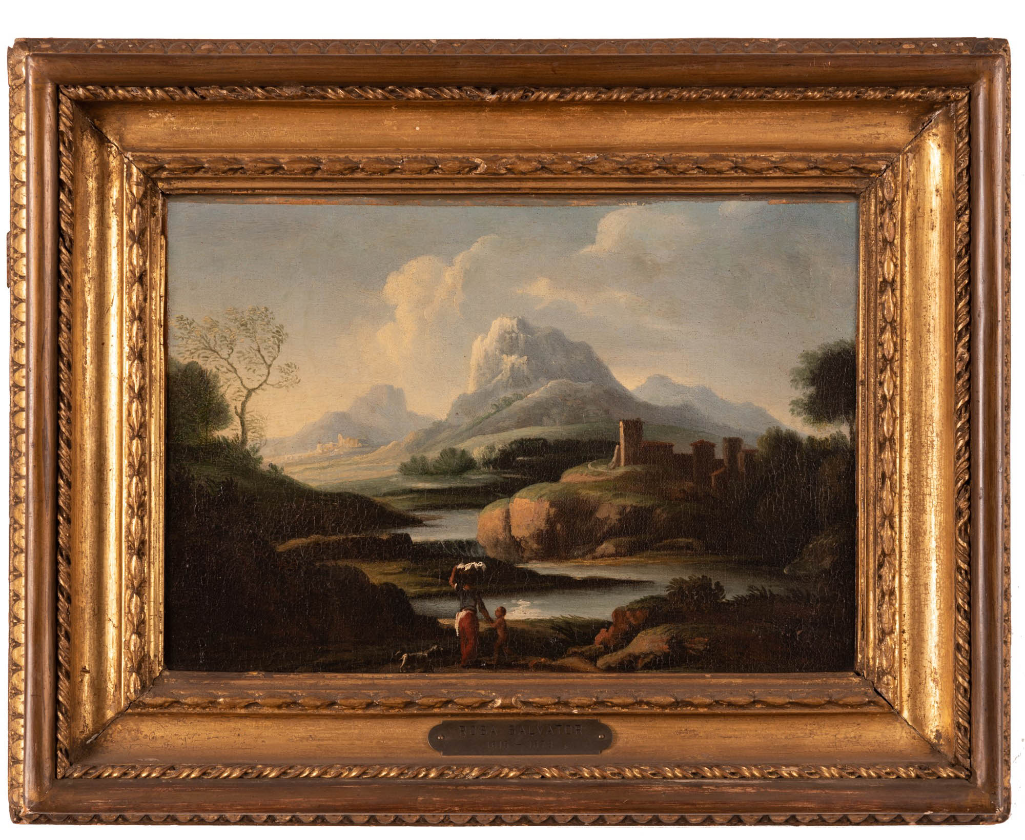 Scuola di Salvator Rosa del XVII secolo ( - ) Paesaggio con figure olio su tela cm 25x35