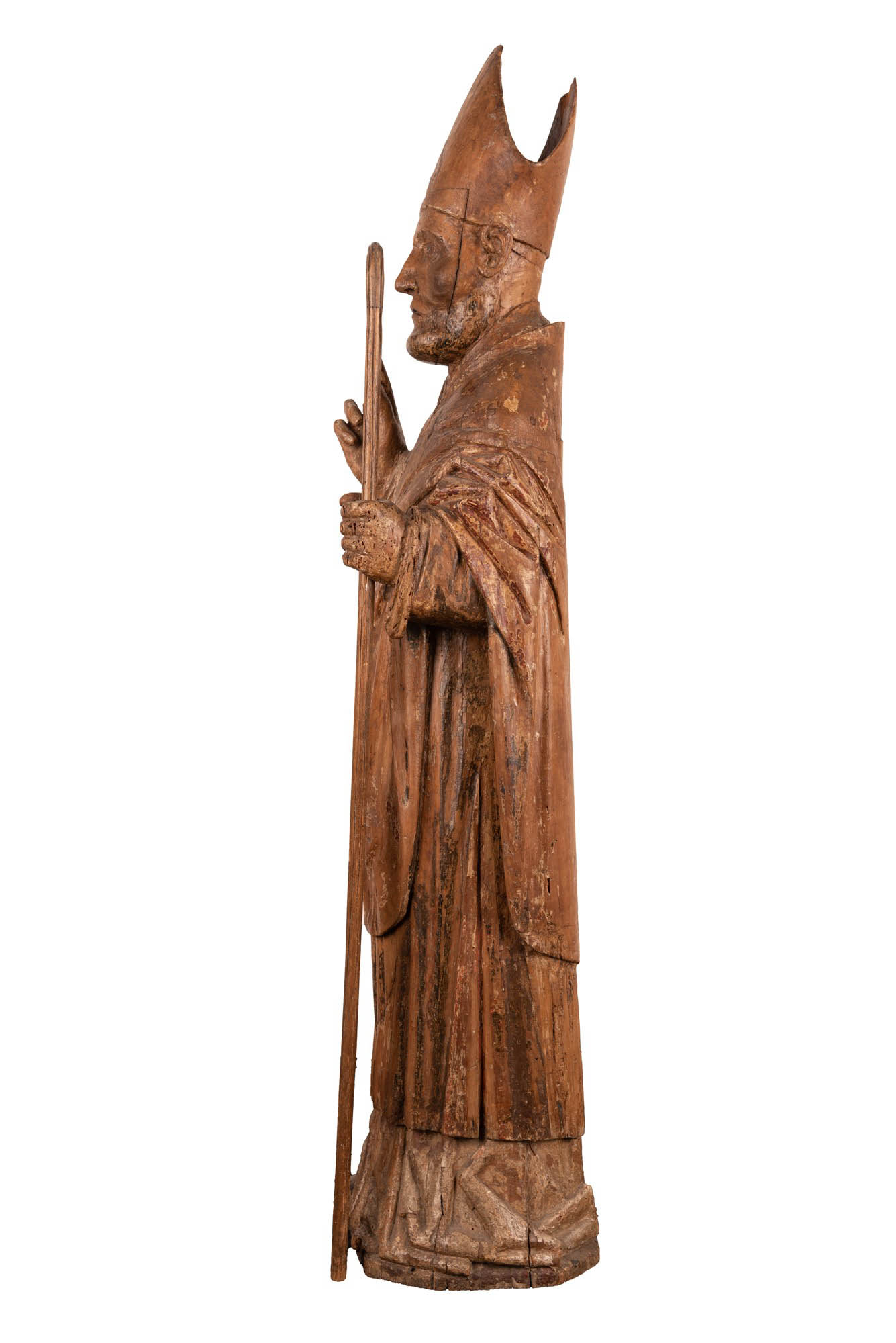 Manifattura dell'Italia del Nord del XVI secolo ( - ) Scultura raffigurante S. Ambrogio Legno intagliato con tracce di policromia altezza cm 132