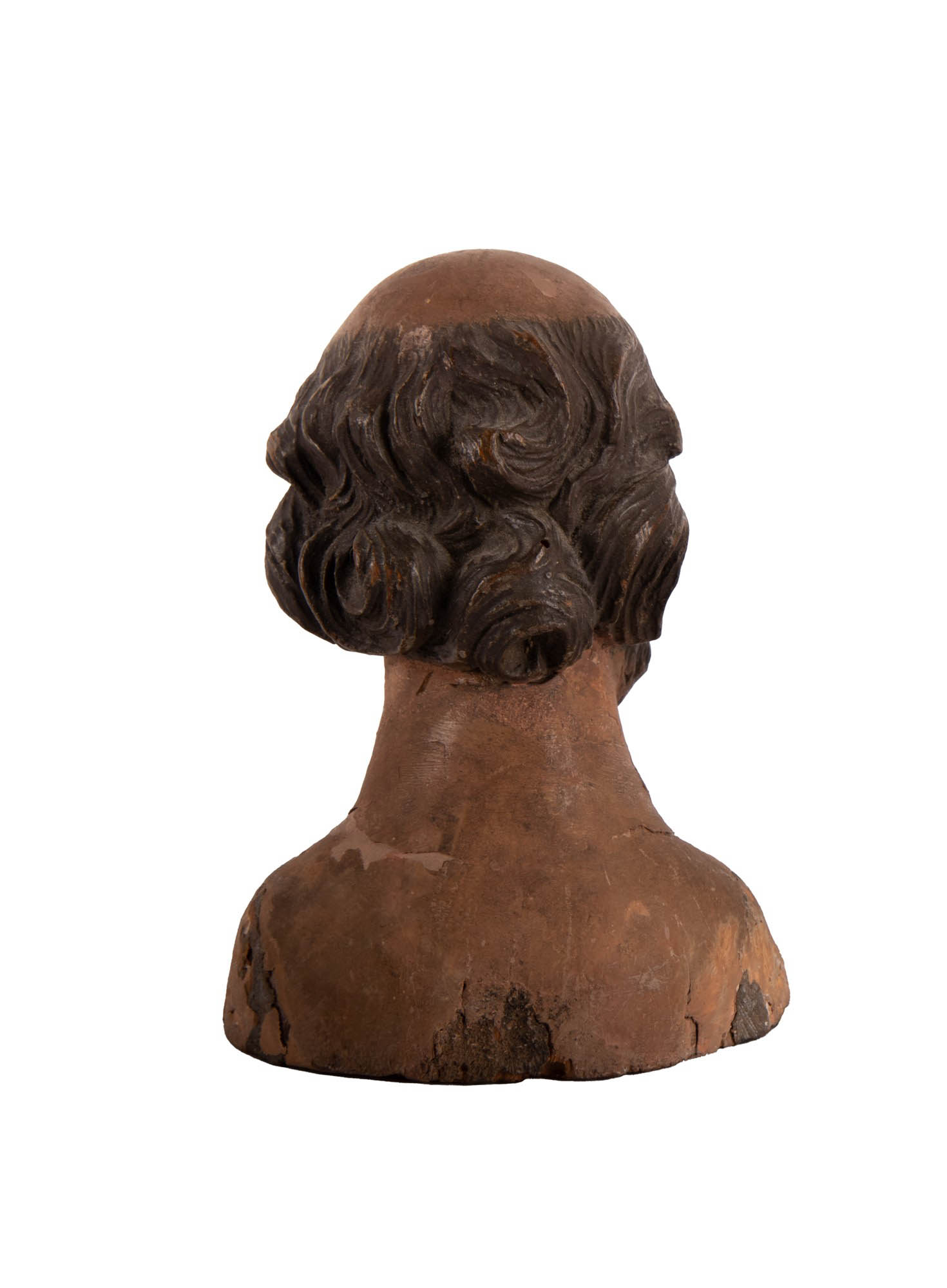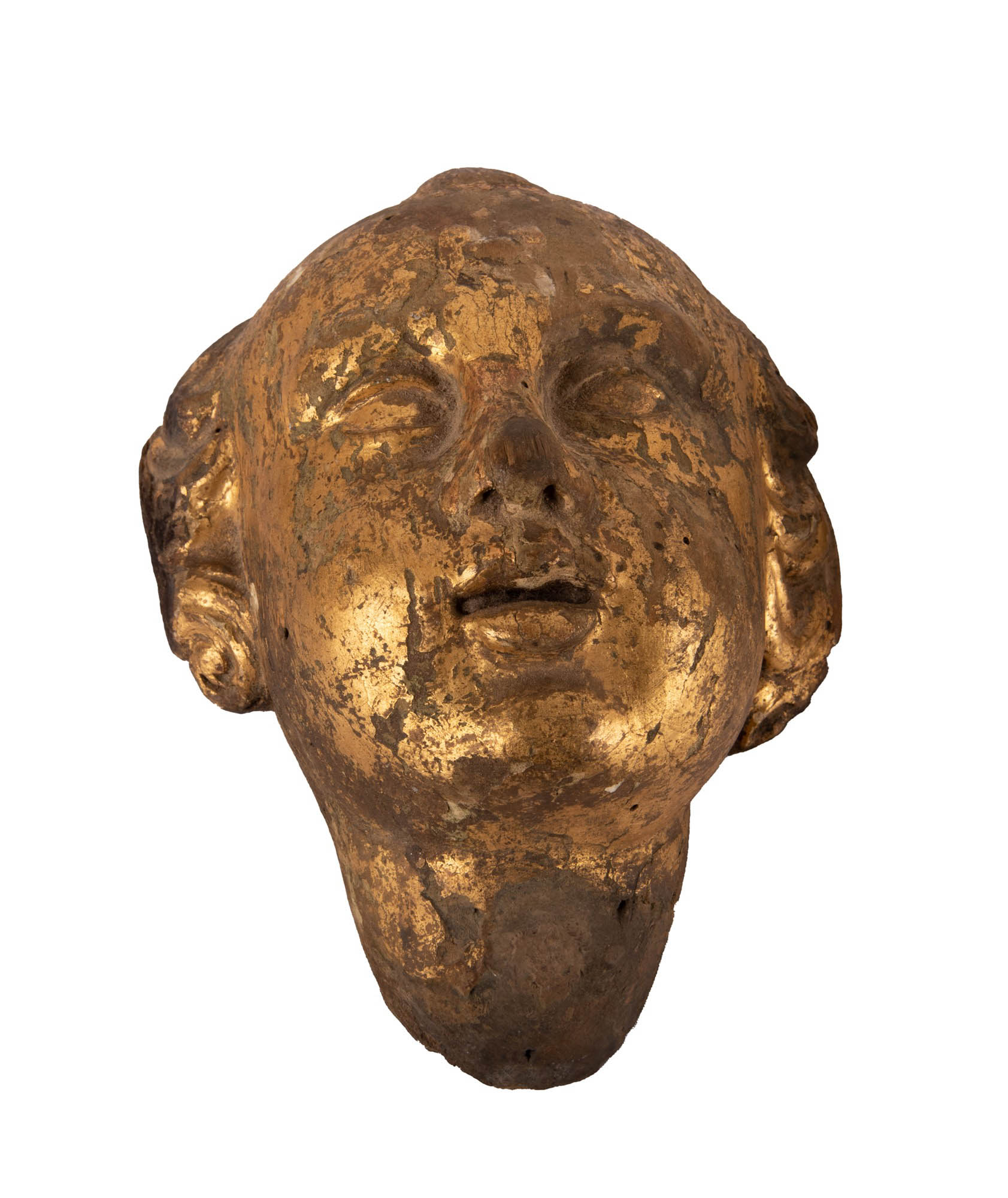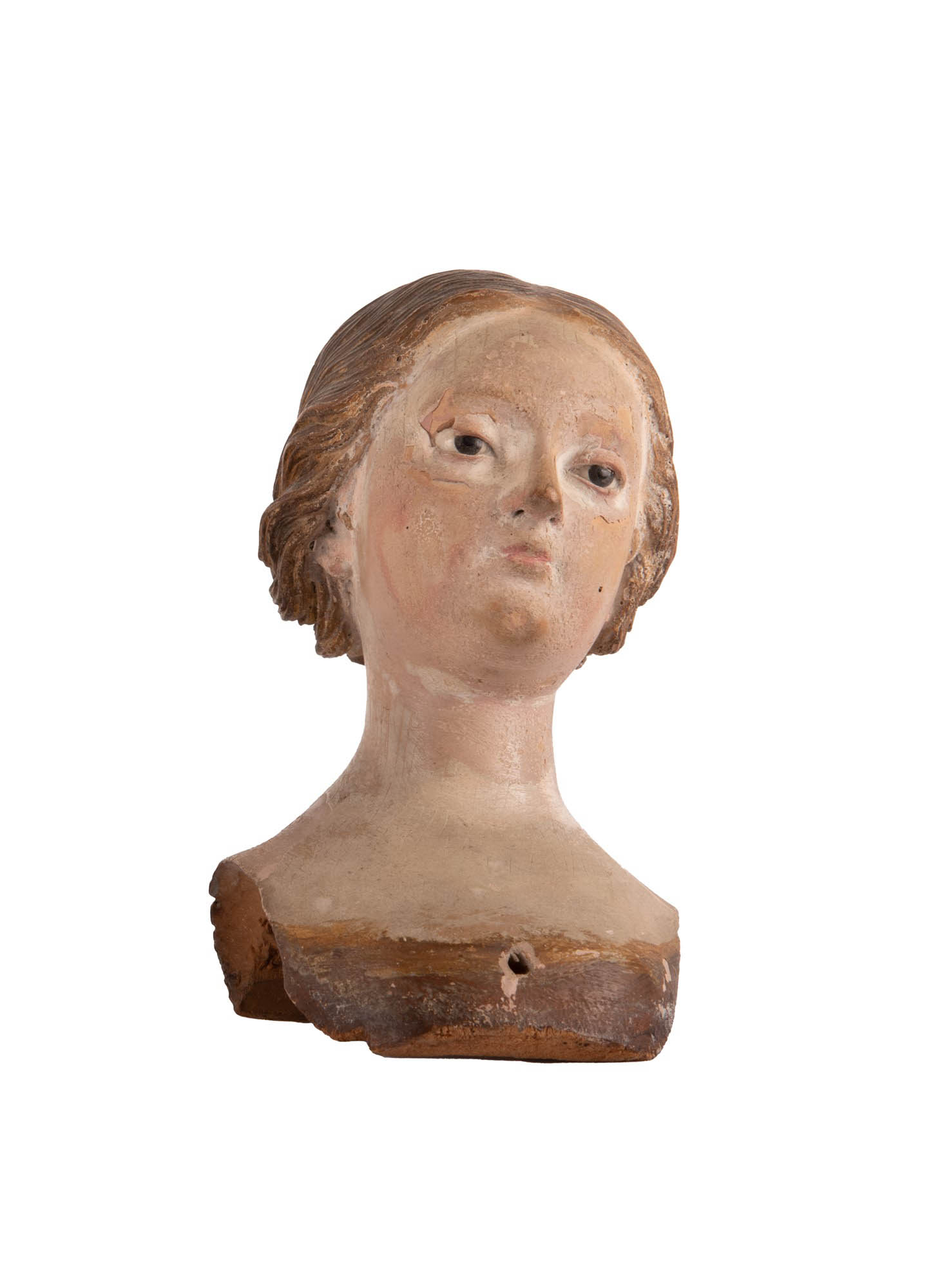 Manifattura romana del XVII secolo e napoletana del XVIII secolo ( - ) Lotto di 3 teste Legno intagliato e dorato / Legno intagliato policromo putto cm 16,5x12 / busto maschile cm 12 / busto femminile cm 13