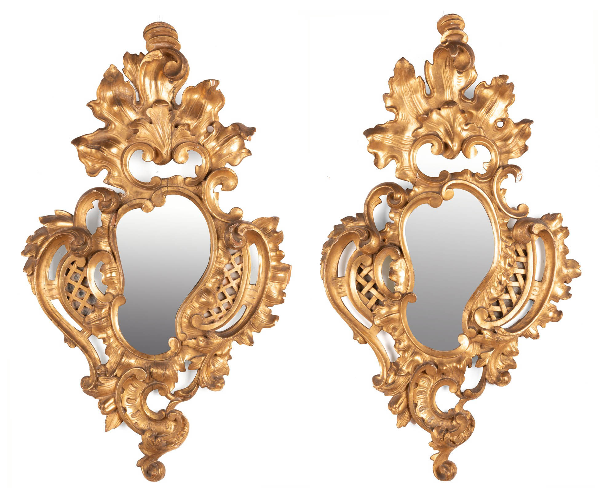 Manifattura veneta del XIX secolo ( - ) Coppia di specchiere a ventola Legno intagliato e dorato cm 90x52