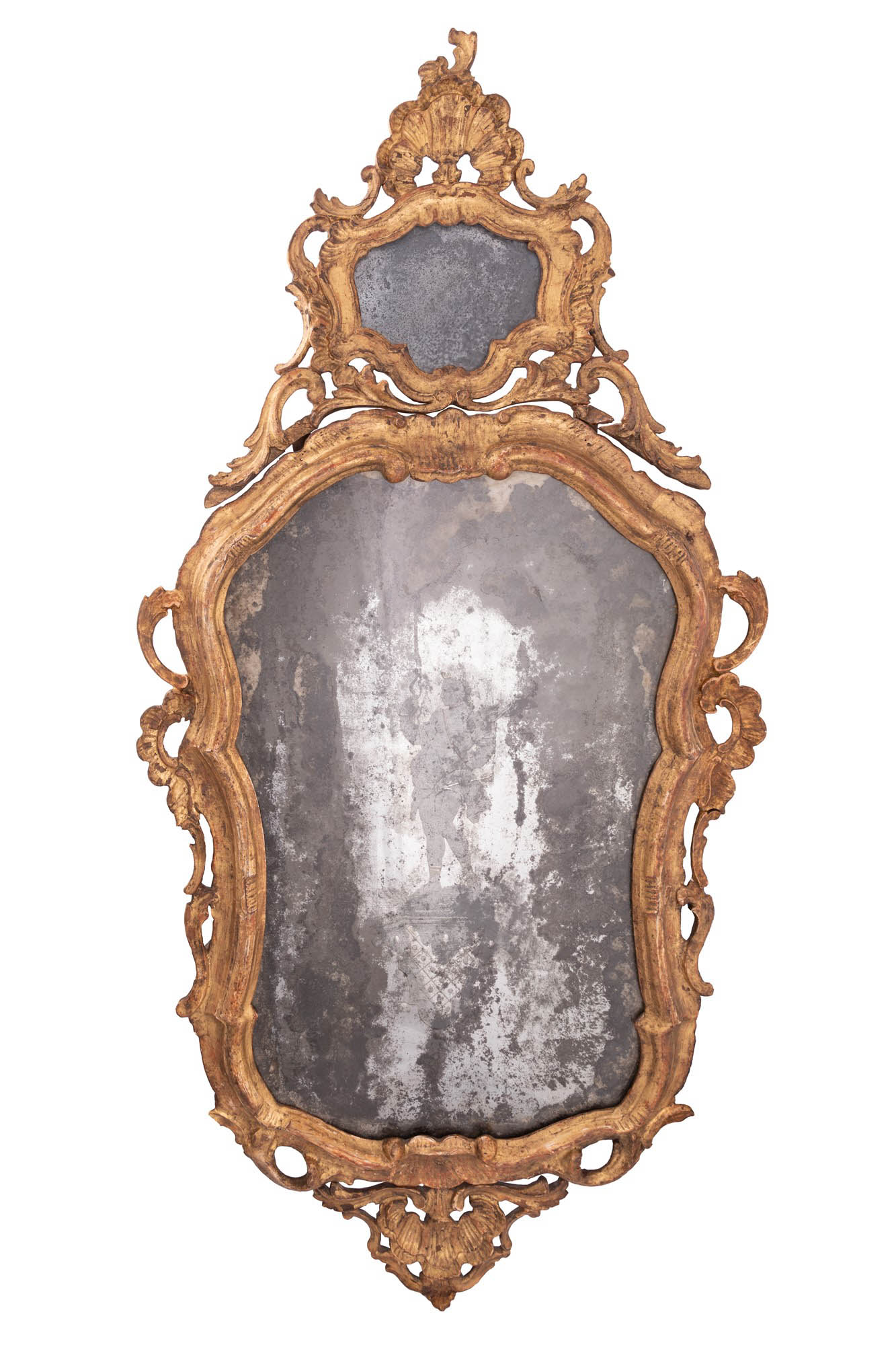 manifattura veneta XVIII secolo ( - ) Specchiera con cimasa Legno intagliato e dorato cm 126x62