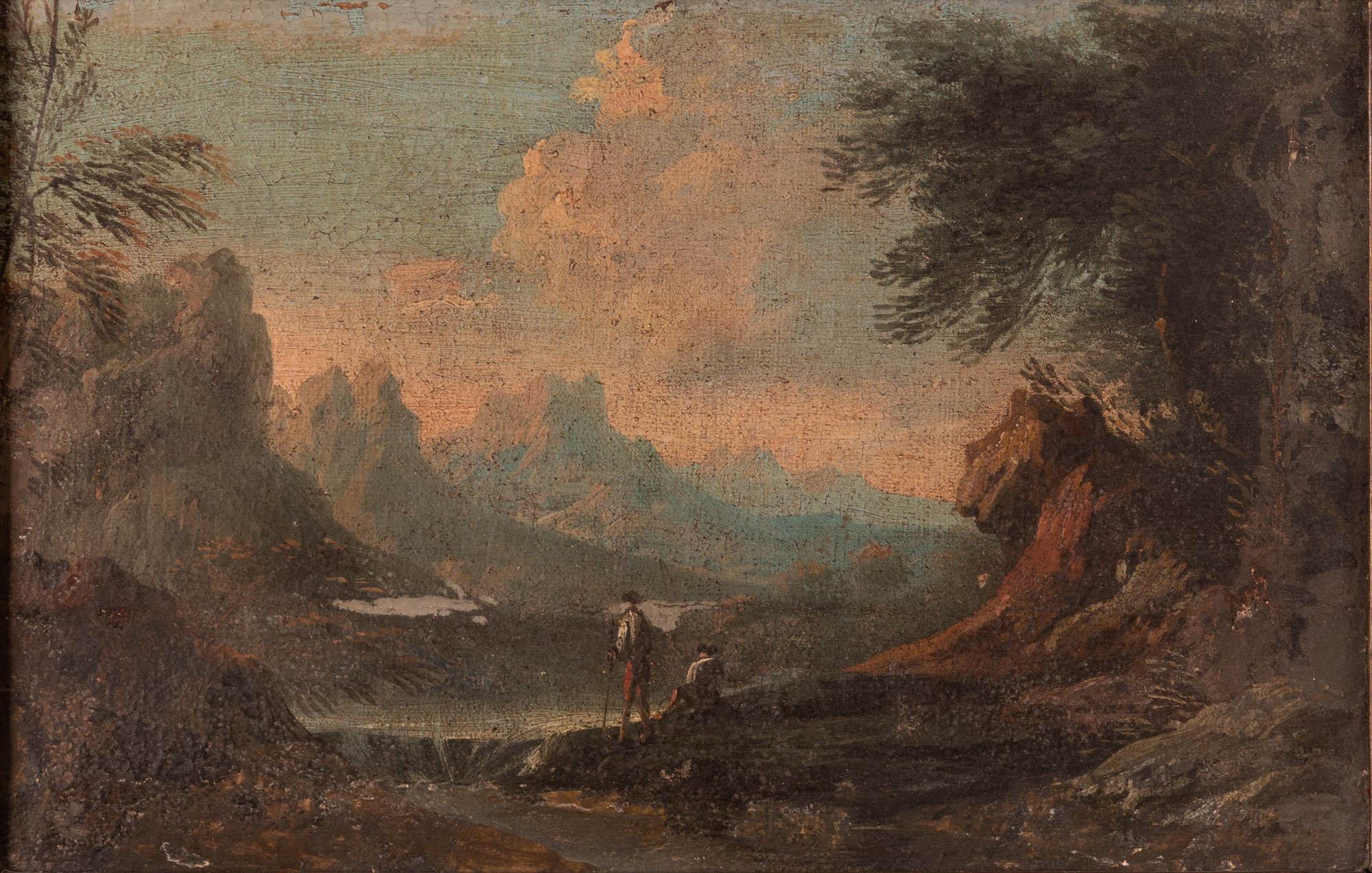 Lotto 32 | De Marchis, Alessio (Napoli, 1684 - Urbino, agosto 1752) Paesaggio con figure Olio su tela cm 28x43