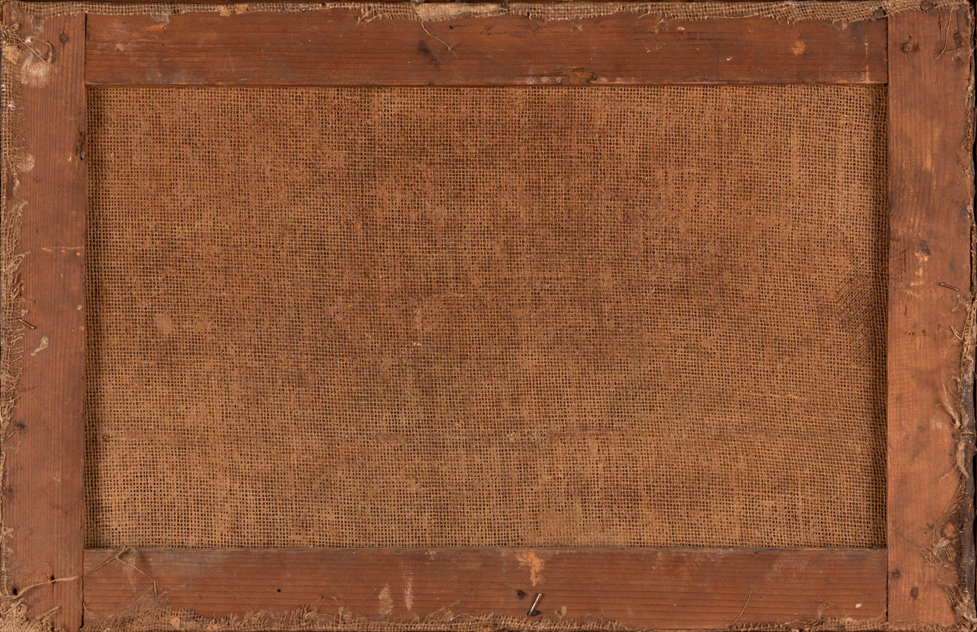 Olio su tela cm 28x43 Cornice coeva di tipo Salvator Rosa in legno argentato a mecca