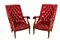 Manifattura inglese del XX secolo ( - ) Coppia di poltrone da camera di tipo Chester Legno intagliato e imbottito in pelle rossa cm 95x57x80