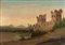 Scuola Dell'Italia del nord del XIX secolo ( - ) Paesaggio con fortezza olio su tela cm 50x70