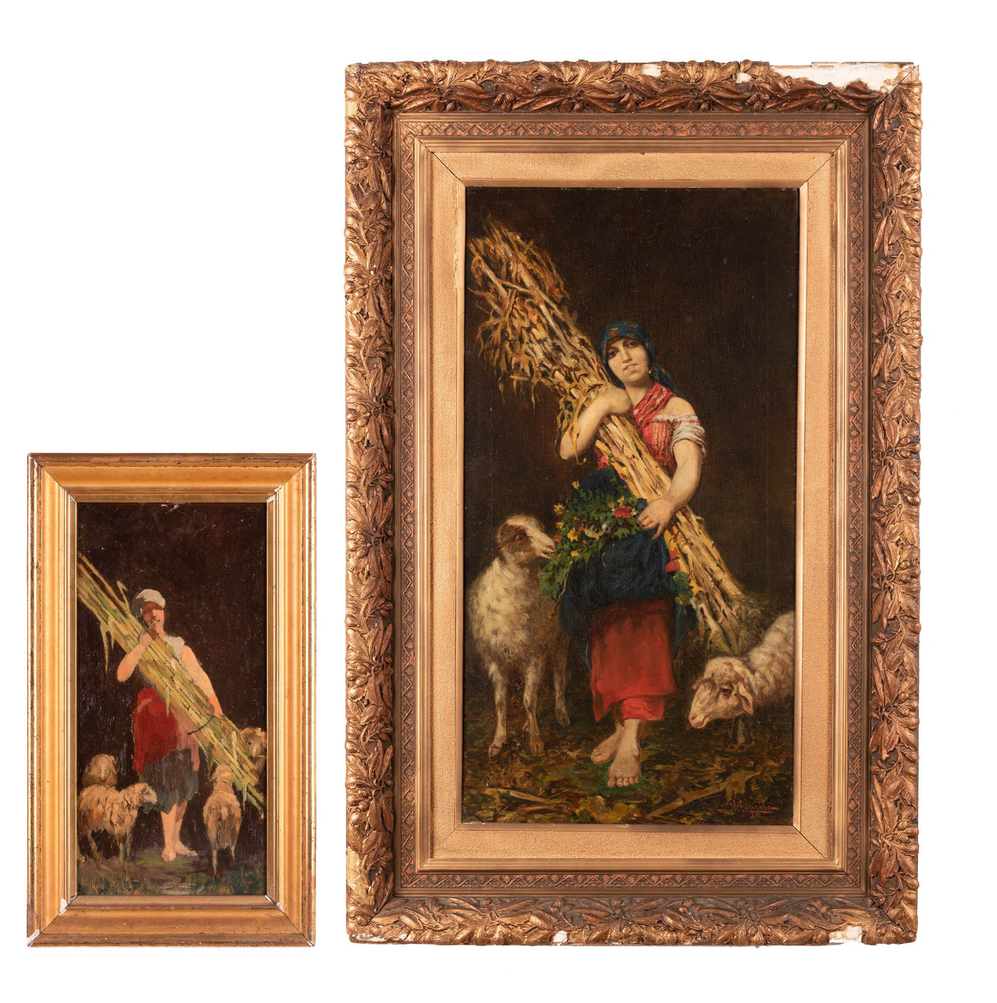 Caprile, Vincenzo (Napoli, 1856 - Napoli, 1936) Lotto di 2 dipinti raffiguranti Pastorella e relativo bozzetto Olio su tela e Olio su tavola cm 82x44 e 34x17