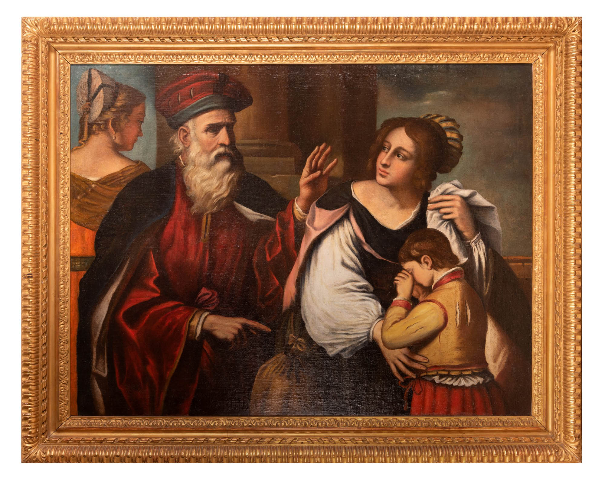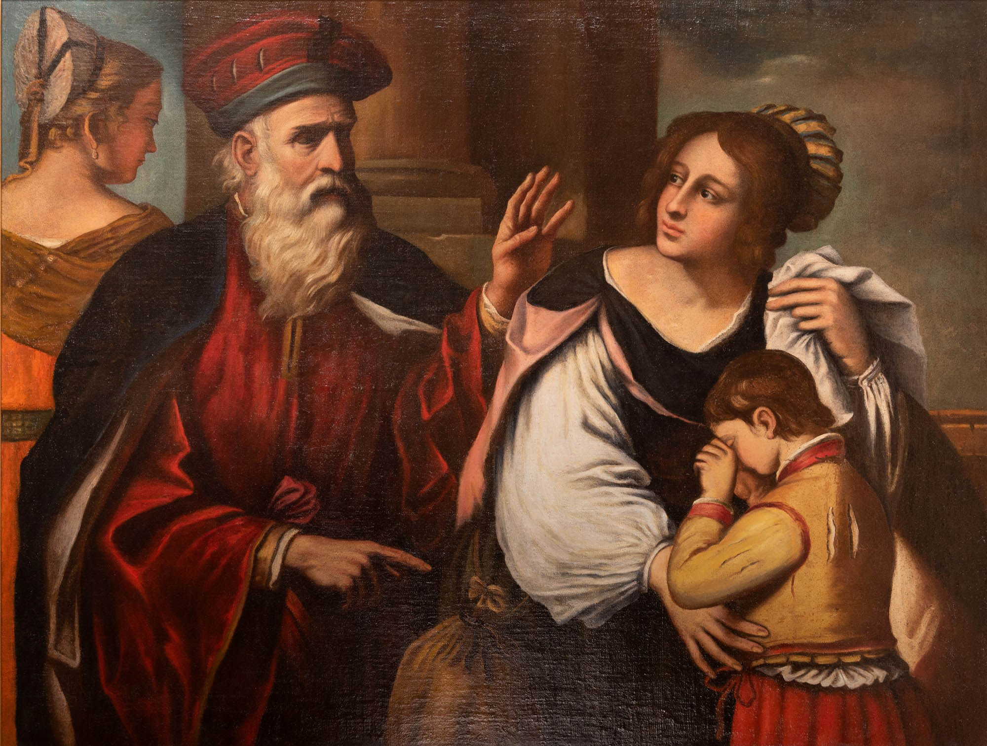 Scuola Emiliana XVII secolo ( - ) Abramo ripudia Agar e Ismaele olio su tela cm 90x119