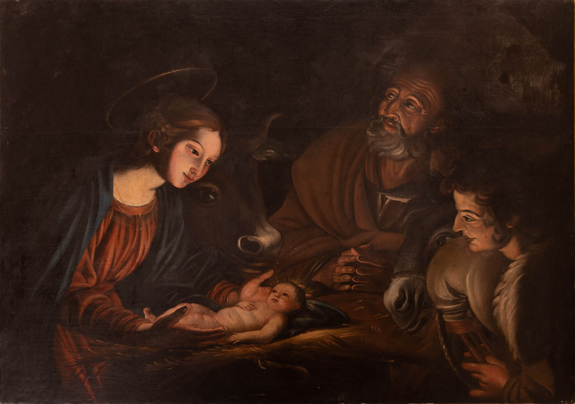 Scuola dell'Italia del nord del XVII secolo ( - ) Adorazione dei pastori olio su tela cm 96x136