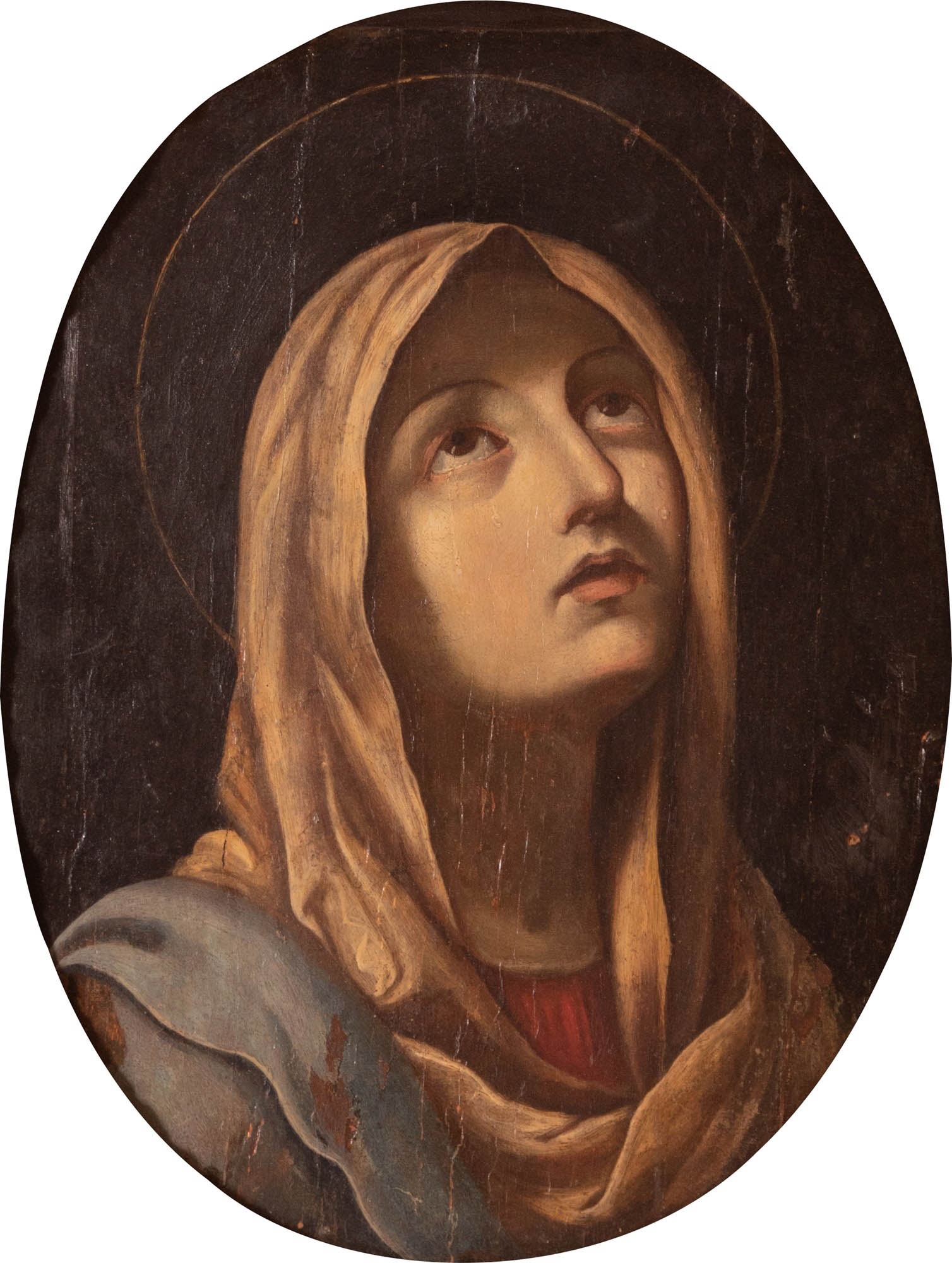Scuola Emiliana XVII secolo ( - ) Madonna addolorata olio su tavola cm 36x26 ovale