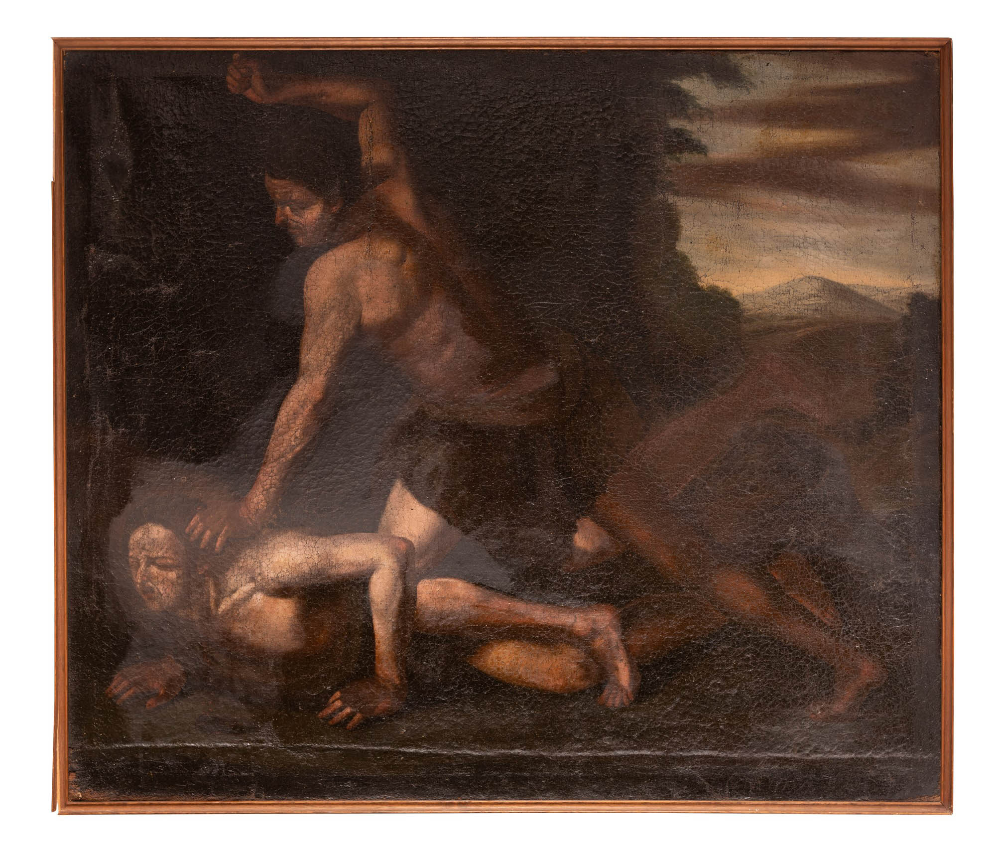 Scuola napoletana del XVII secolo ( - ) Caino e Abele olio su tela cm 70x81