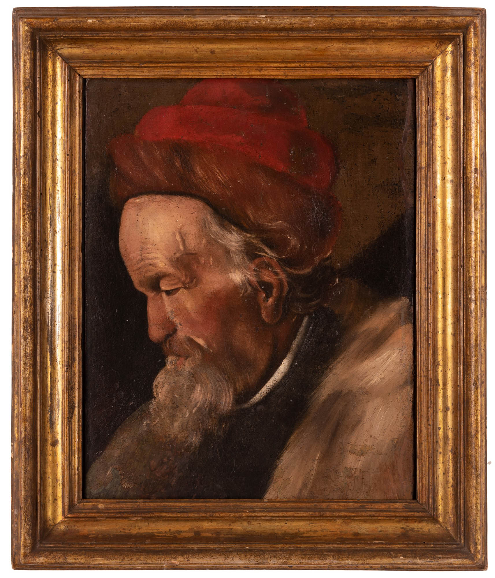 Scuola olandese del XVII secolo ( - ) Ritratto di uomo con barba e cappello rosso olio su tela cm 43x32