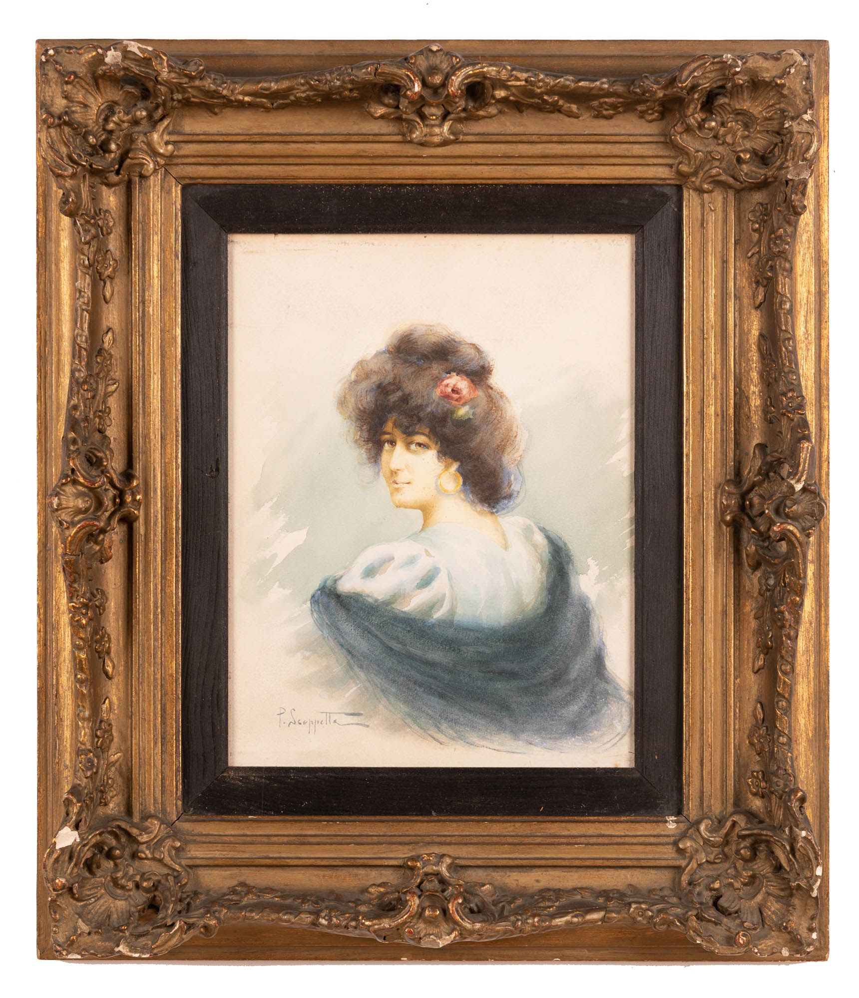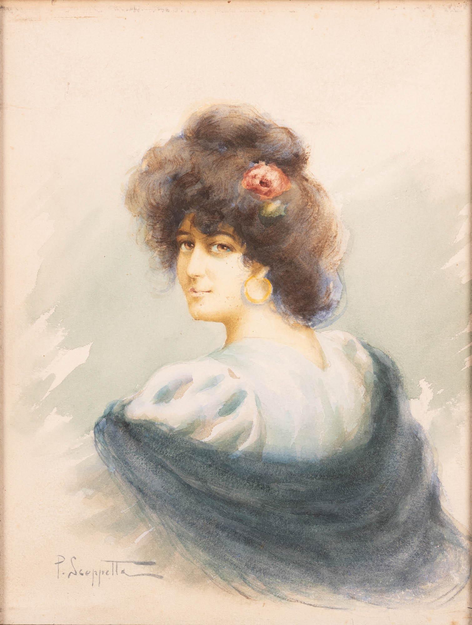 Scoppetta, Pietro (Amalfi, 1863 - Napoli, 1920) Ritratto di donna Acquerello su carta cm 29x22