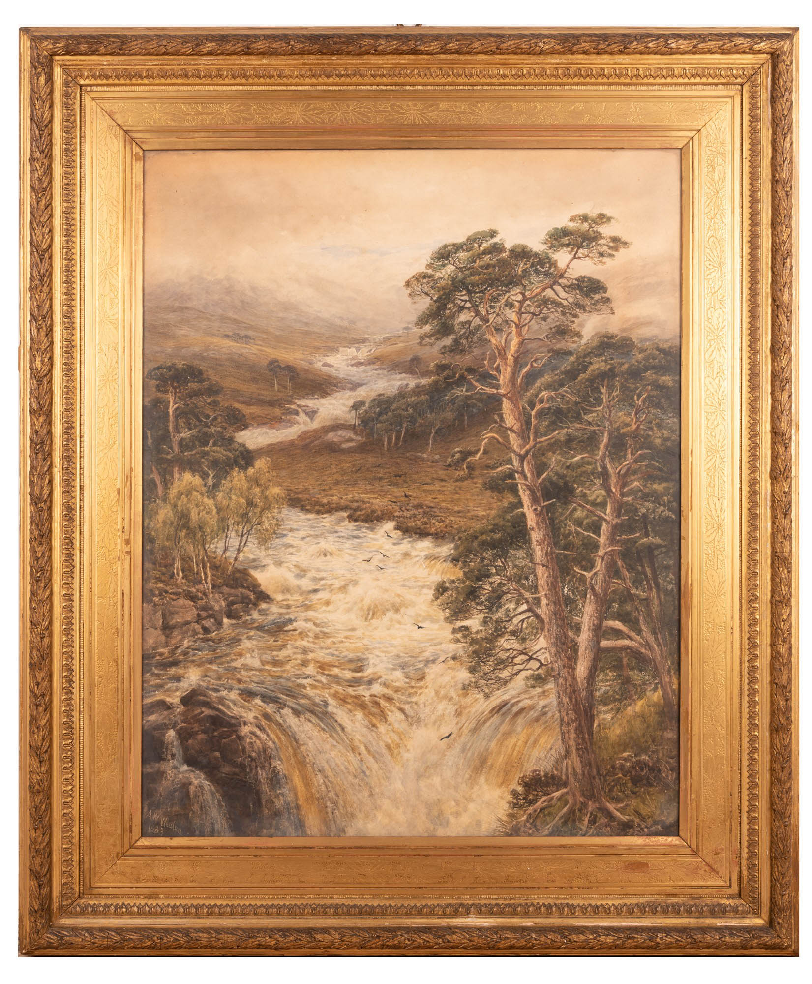 Weedon, Augustus Walford (1838 - 1908) Paesaggio con cascata Acquerello su carta applicato su tavola cm 84x66