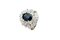 in oro bianco, a margherita, con al centro zaffiro taglio ovale di ct 3,0 ca e doppio contorno di diamanti taglio brillante e trapezio per totali ct 2,30 ca (uno mancante)