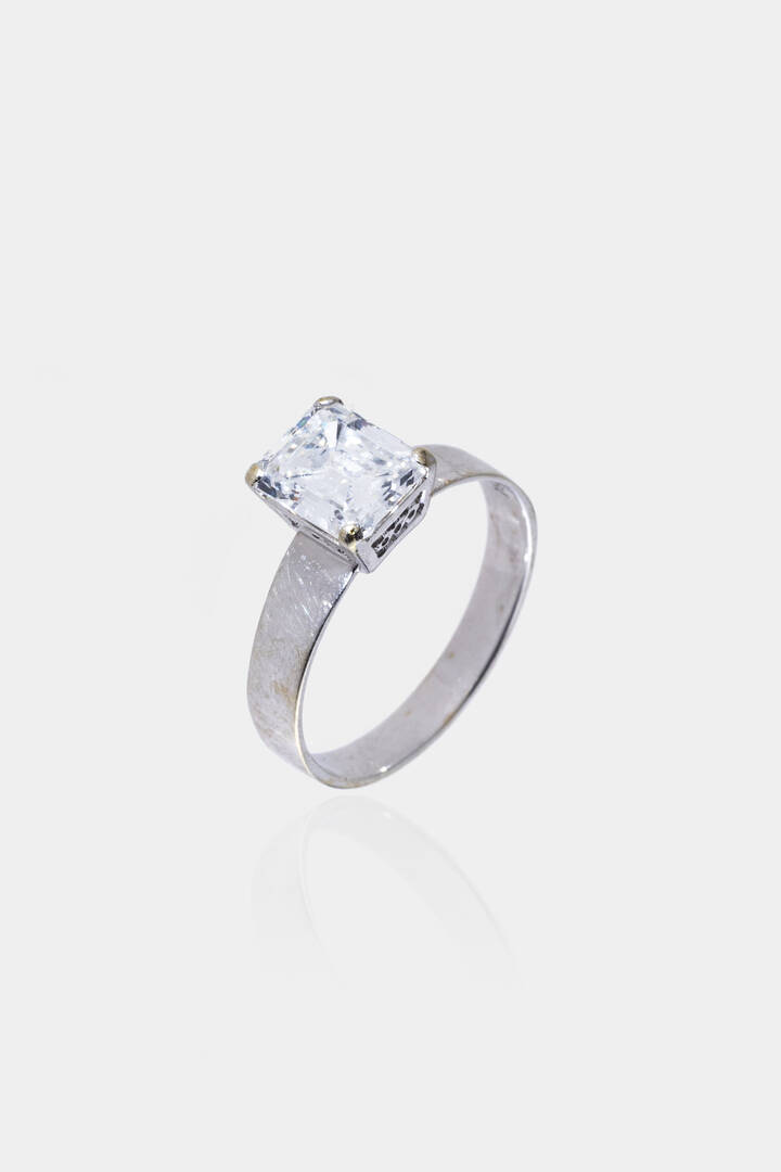 in oro bianco con al centro diamante taglio smeraldo di ct 1,50 ca