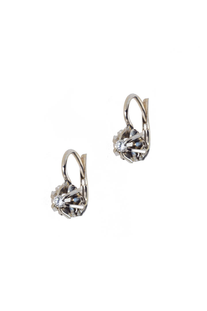in oro bianco, a monachella, con due diamantini taglio brillante per totali ct 0,10 ca