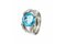 in oro bianco, sommità con al centro topazio azzurro taglio briolette trattenuto da quattro fasce di diamanti taglio brillante per un totale di ct 0.20 ca