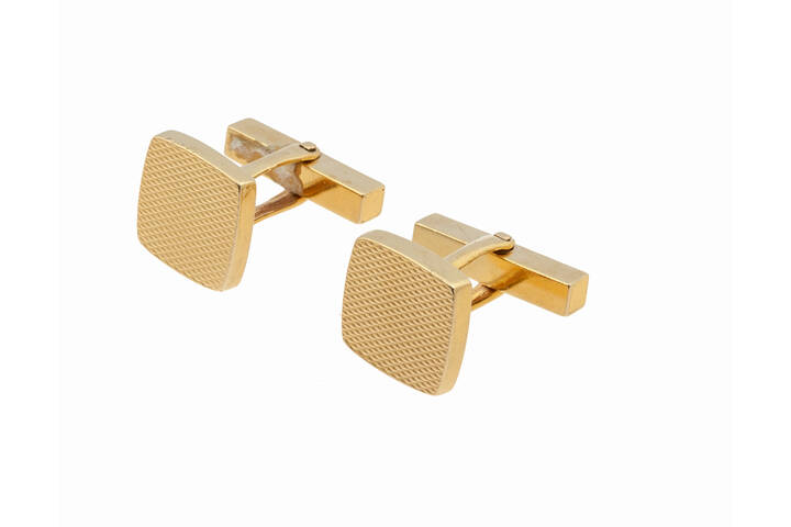Coppia di gemelli in oro giallo satinato, firmati "Tiffany & Co", di forma quadrata