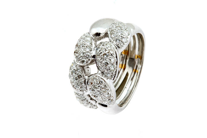 in oro bianco, sommità a maglia groumette in diamanti taglio brillante per totali ct 0,75 ca