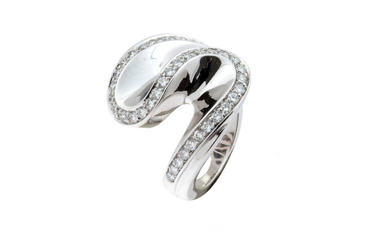 in oro bianco, sommità ad onda con diamanti taglio brillante per totali ct 0,80 ca
