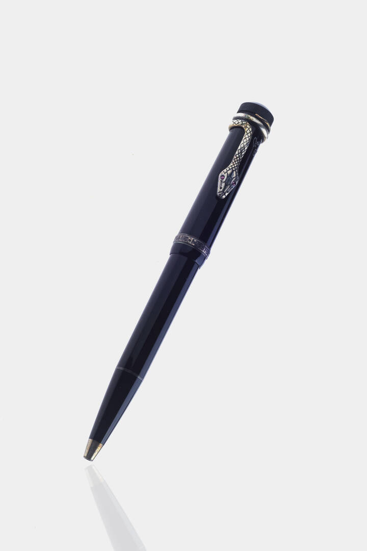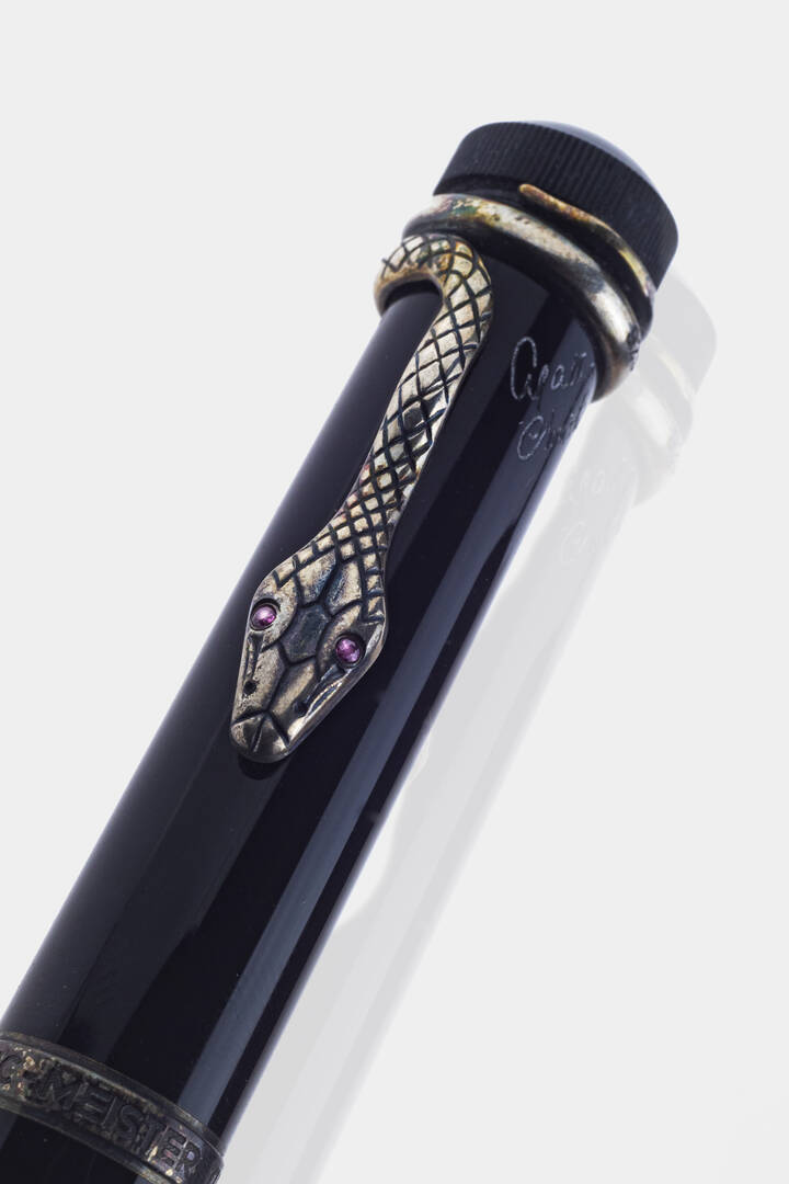 Penna a sfera Meisterstuck in edizione limitata, "Agatha Christie", cappuccio personalizzato con logo della maison e bariletto in resina nera