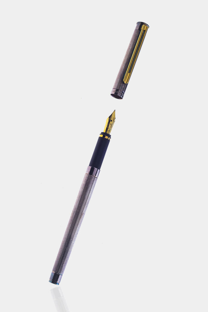 Stilografica "Montblanc", linea "Noblesse" con corpo in acciaio e pennino in oro giallo.