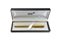 Stilografica Montblanc, con cappuccio e bariletto placcati in oro giallo e fesonati.