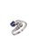 in oro bianco, modello contrarié, con diamante taglio brillante di ct 0,18 ca, zaffiro taglio ottagonale a gradini di ct 0,50 ca e piccoli diamanti taglio brillante per totali ct 0,10 ca