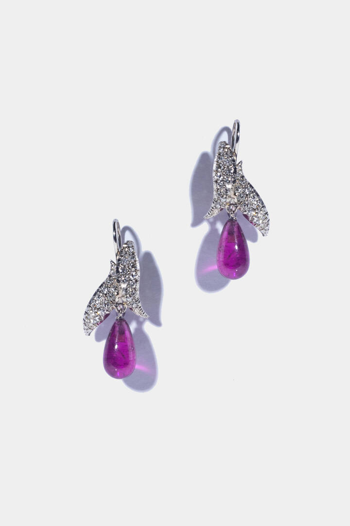 in oro bianco, a monachella, con foglie in diamanti taglio 8/8 per totali ct 0,60 ca