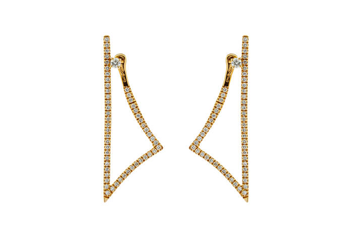 pendenti, in oro rosa, di forma geometrica con profili in diamanti taglio brillante per totali ct 1, 08 ca, probabile colore G-H, purezza IF-VVS