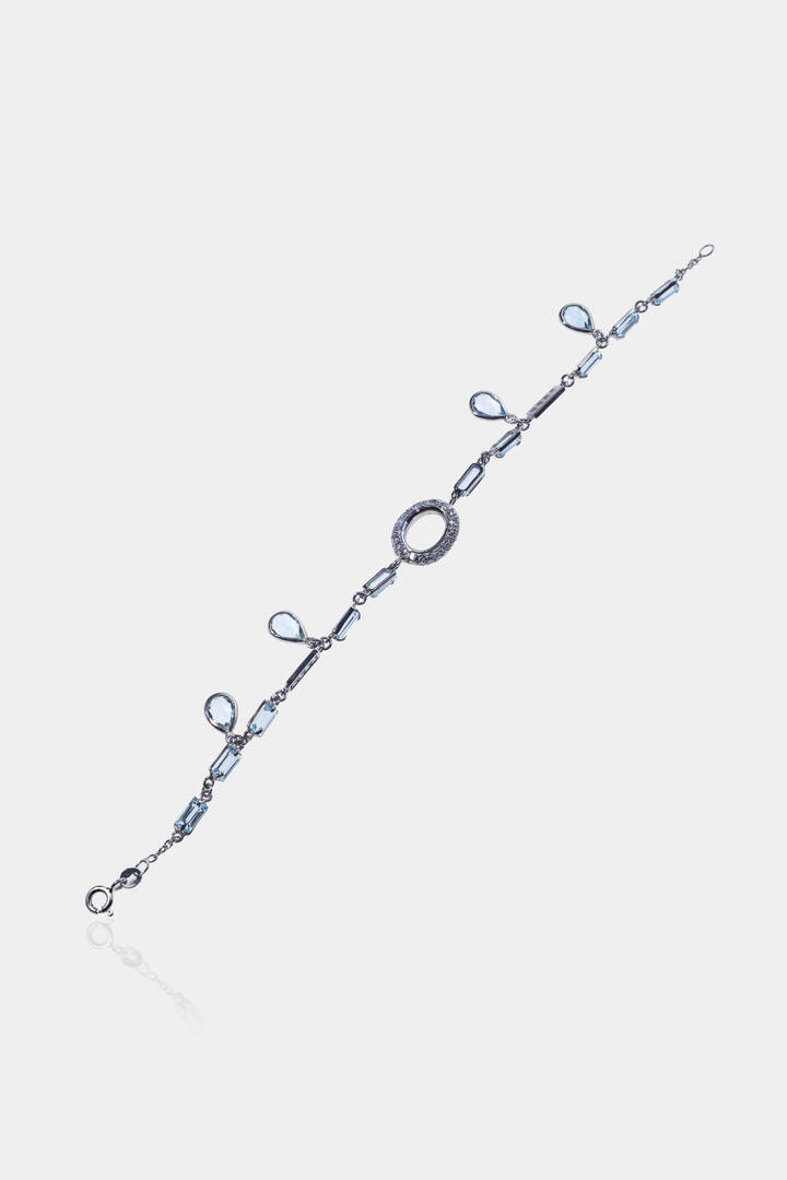 in oro bianco con acquamarine taglio a goccia e baguette per totali ct 6 ca e diamanti taglio brillante per totali ct 0,15 ca