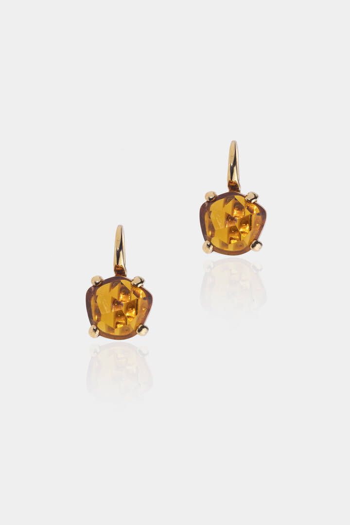 Coppia di orecchini in oro giallo, a monachella, firmati "Pomellato", con due quarzi citrini sfaccettati