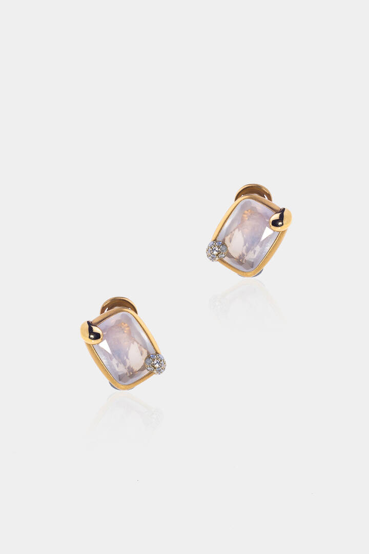 Coppia di orecchini, in oro giallo sabbiato, firmati "Pomellato", modello "Ritratto", a clip, con quarzo rosa sfaccettato e piccoli diamantini a decoro