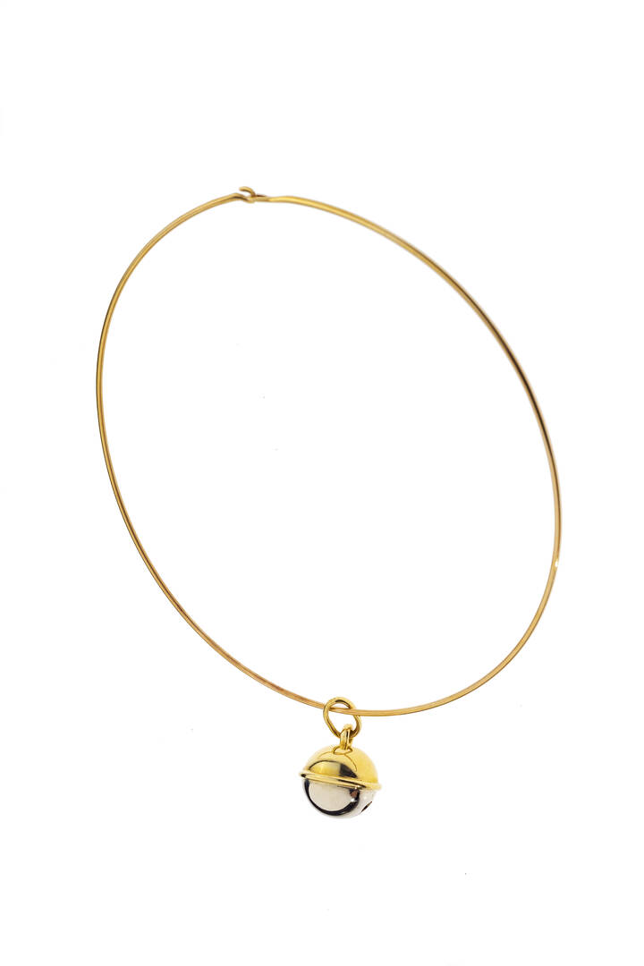 Ciondolo in oro giallo e bianco a forma di campanello, firmato "Pomellato", montato su girocollo rigido non firmato